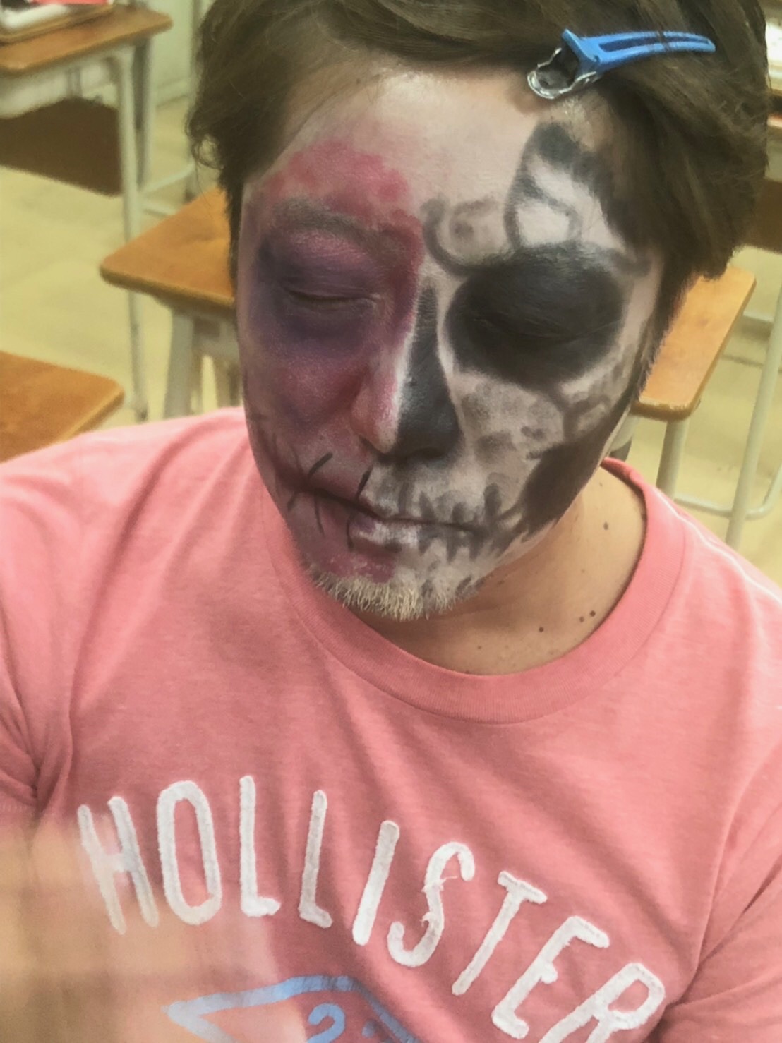 以前、高校へ職業講話をさせていただき、そのつながりで、文化祭のおばけ屋敷のメイク。