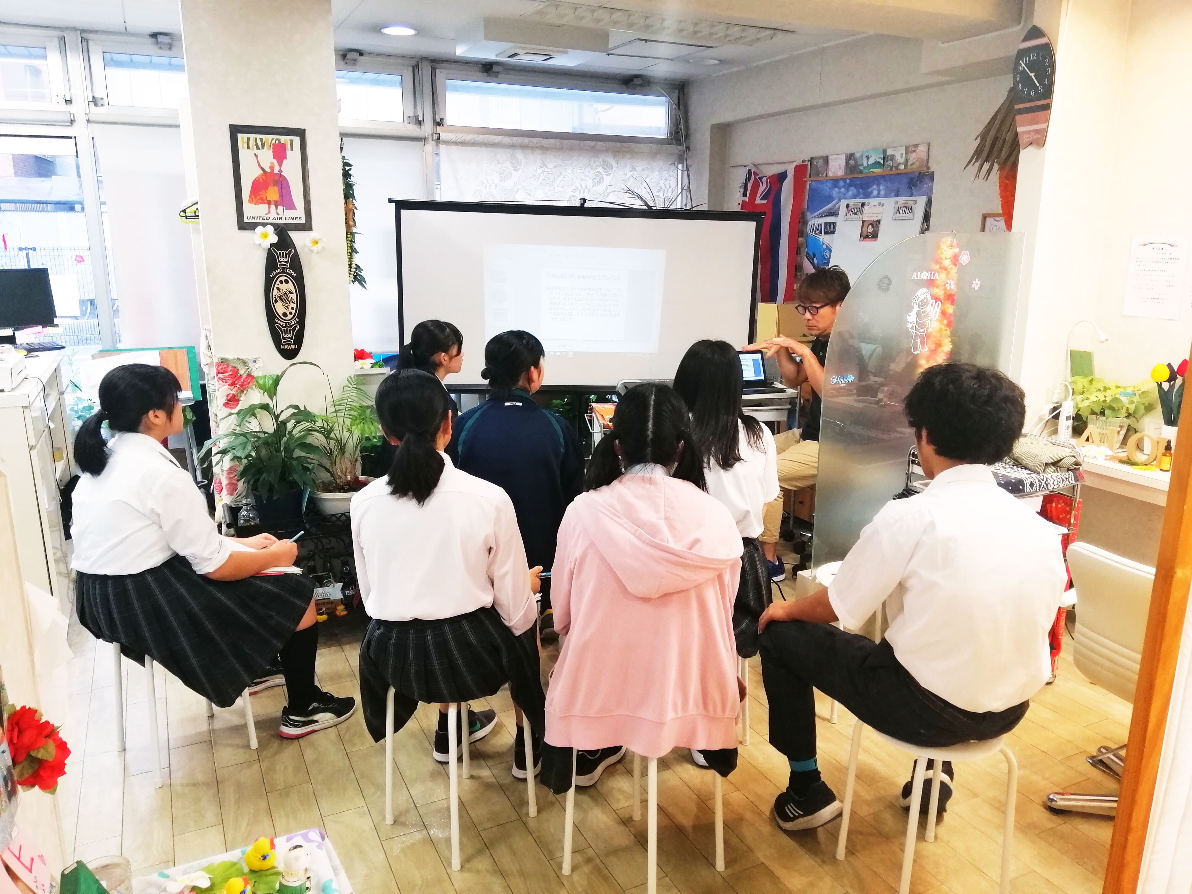 といっても、演技指導ではなく、役づくりの中で、私たちアロハcwbが勉強している福祉関連の内容を高校生に伝えてあげました。